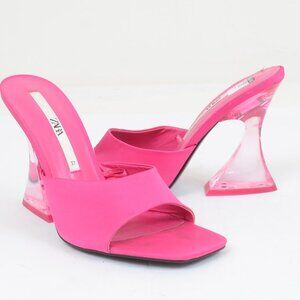 Zara Barbie Pink Clear Heels Slides Slip On Open Toe Sandals Women's 6