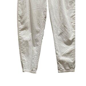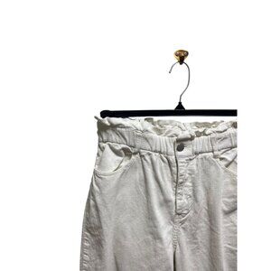 Zara Barrel Leg Paper Bag Waist Corduroy Pants White Size 4 Minimalist Neutral