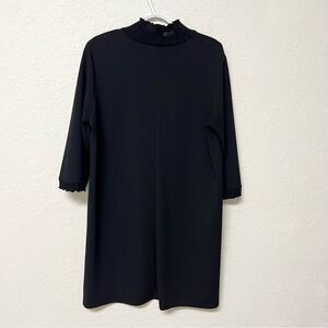 Zara Basic 3/4 Sleeve Black Mock Neck Ruffle Mini Dress Classic Women's Size L