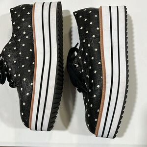 Excellent preloved condition, tie espadrille style tennis shoe. Chunky, platform, tie shoes, very structured, derby canvas/mud cloth material.
