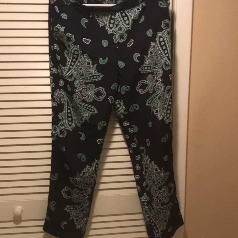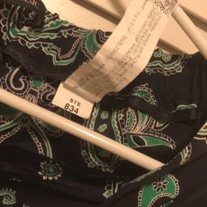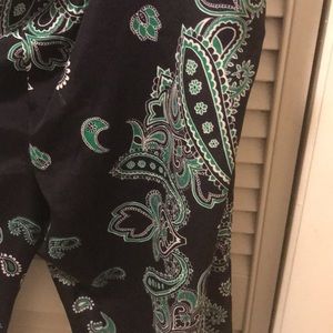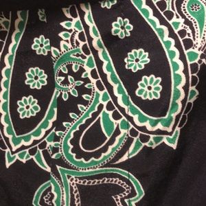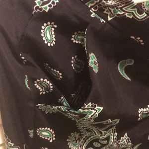 Navy and Kelley green paisley madness 😎100 percent polyester. Pockets and comfortable. Throw on. Too cute