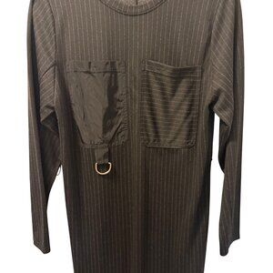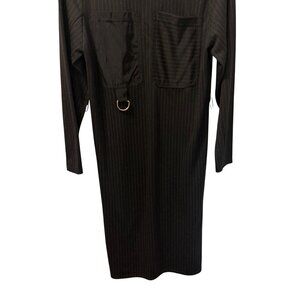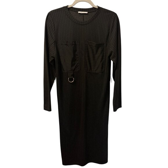 Zara Basic Black Pinstripe Long Sleeve Dress With Pockets Sz S Dress