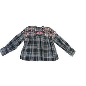 ZARA BASIC BLACK PLAID EMBROIDERED ROSES TOP