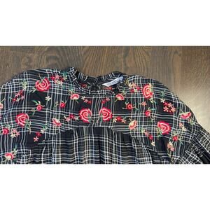 Zara Basic Black Plaid Embroidered Roses Top Boho Festival Cottage English M