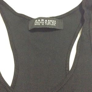 Zara / Basic / 95% Cotton & 5% Elastane / Black Racerback Tank. Very flattering tank top. It reads a Medium but fits closer to a Small.