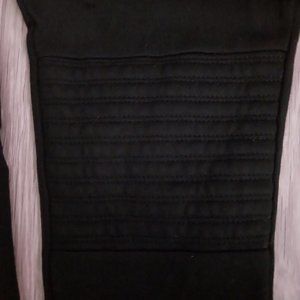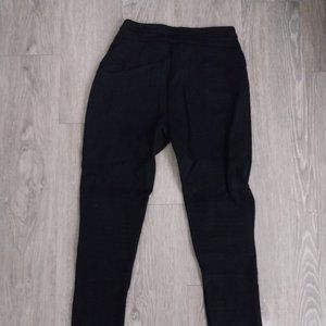 Zara Basic Black Skinny Stretch Pants/Leggings Size Medium gently used. These pants feature zippered pockets and ribbed knee patches. Material is soft and stretchy. Waist flat 12 inches, hip to hem 33 inches, inseam 23 inches. There is a slight snag on the front of the right leg. Otherwise no tears or stain noted.