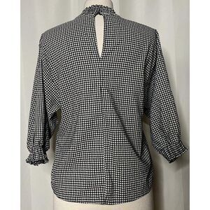 Zara Basic Black & White Gingham Check Pullover Top Sz S Smocked Detail