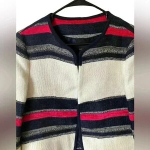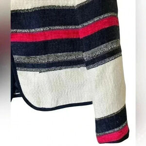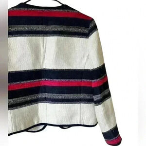 Zara Basic Blazer Jacket M Women Ivory Blue Red Stripe Poly Wool