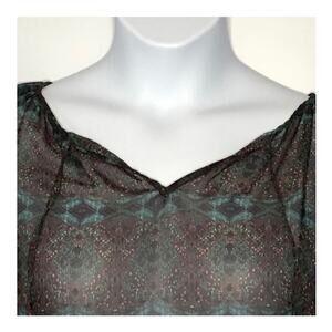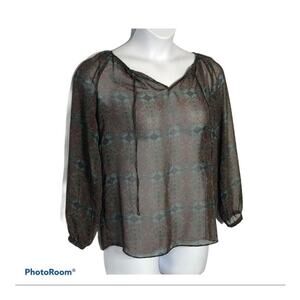 Zara Basic Boho Sheer Blouse Self-Tie Neck Multicolor Long Sleeve Small