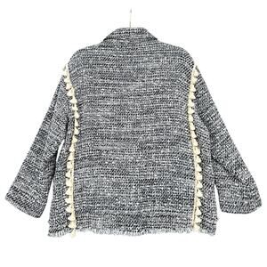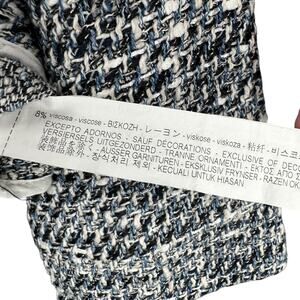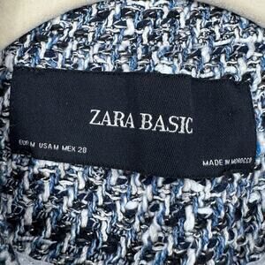 Zara Basic Boucle Blue White Tassel Patch Pockets Button Up Tweed Jacket Size M