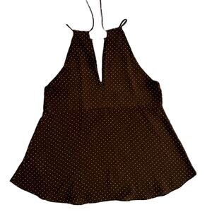 Zara Basic Brown White Polka Dot Sleeveless blouse XS