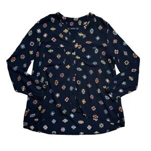 In Great Condition • Woman’s US Medium • Black • Travel • Work Attire • Long Sleeve • Jewel / Brooch Pattern • Patch Pockets • Button Down • Zara • Blouse • Viscose