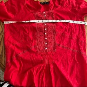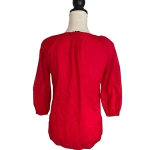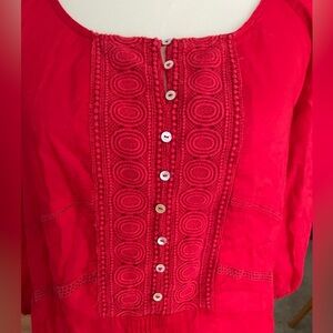 Zara Basic Button Up Blouse With Embroidery On The Bodice 3/4 Blouse Size Small