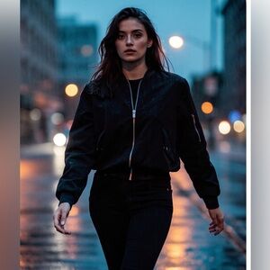 Zara Basic Collection thin bomber jacket in black with silver zipper & hardware