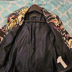 Colorful Floral Blazer perfect for formal or informal outfit. Lightweight fabric and open style in the front.