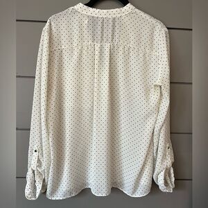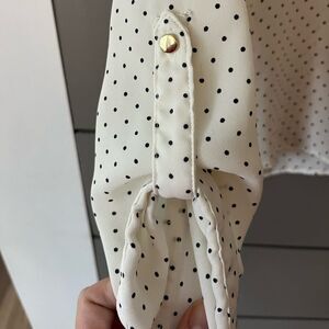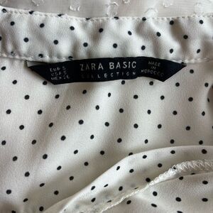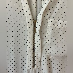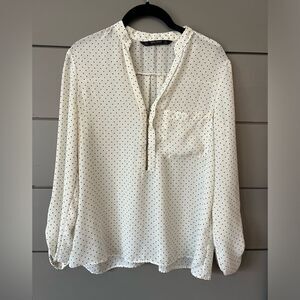 Zara Basic Collection Cream/Black Polka Dot Long Sleeve V-Neck Zipper Blouse Sm
