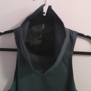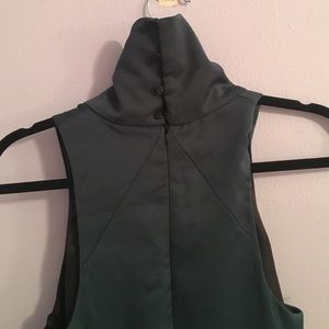 Brand new, never worn (tag still attached). Beautiful green satin dress with cowl neck and 4 button detail on the back of neck.