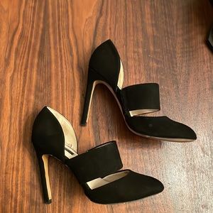 Black suede heels, 4” heel, worn twice
