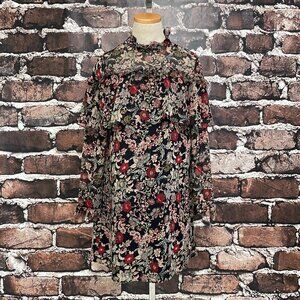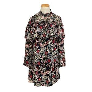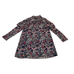 Zara Basic Collection Long Sleeve Dress Fringe Floral Red Black Size Small S