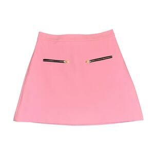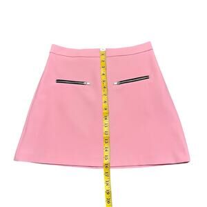 Zara bounce gum pink front detailing faux zippers fully lined. Has a trendy 60's style look with a simple A-line shape and visible front zippers for a modern look. Features a zipper up on the back. No stains or rips and in excellent condition. Machine washable in gentle cycle and air dry. This is beautiful trendy skirt with a modern retro look. Open to all reasonable offers!