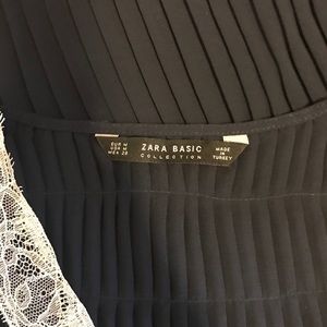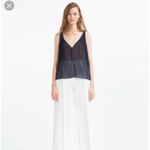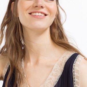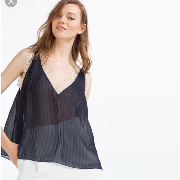 Brand new with tags Zara Basic Collection Navy Blue Lightweight chiffon tank top with a lace trim in a cream color. Size Medium.