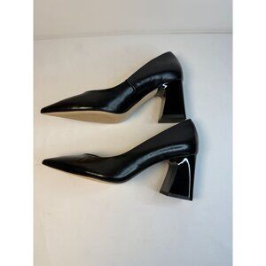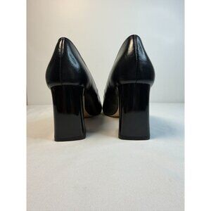 Zara Basic Collection Women Size 7.5 Black Leather Block Heel Pumps Modern Dress
