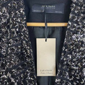 Zara Basic Collection Womens Black Embroidered Sequin Blazer Jacket Size Medium