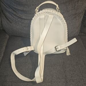 This stylish white woven backpack is perfect for any occasion. Its elegant design and versatile color make it a must-have accessory.