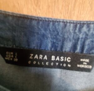 Zara Basic Collection denim Midi Dress. Sz Large. Long Sleeve