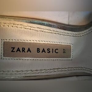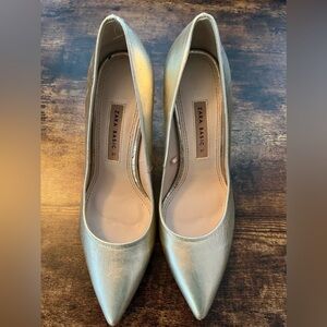 Zara Basic Collection | metallic gold pumps. Size: 37. Color: light metallic gold. High heel/pump shoe. Heels: 3”. Size: 37 which is U.S. 6.5 womens (the length of shoe is 9.25”). Traditional, classic ladies high heeled shoe. Leather. Brand new. Never worn. NWOT