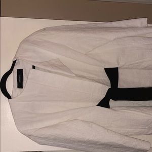 A beautiful detailed white structured but “flowy” blazer that just about covers your bottom. Worn once.