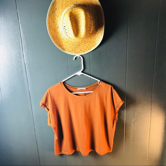 Cute burnt orange Zara basic cropped tee SZ L. EUC.