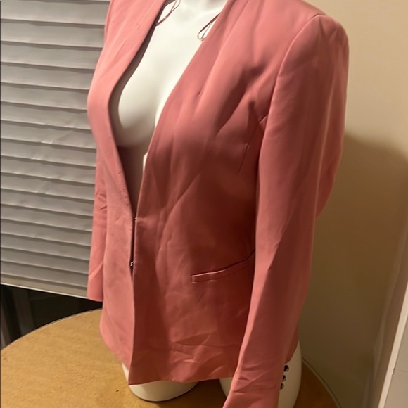 This elegant pink blazer is perfect for adding a touch of sophistication to any outfit. Its sleek design and vibrant color make it a versatile choice for both casual and formal occasions.