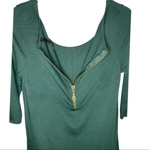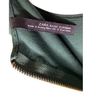 Zara Basic Evening Top mid dress green back zipper boatneck