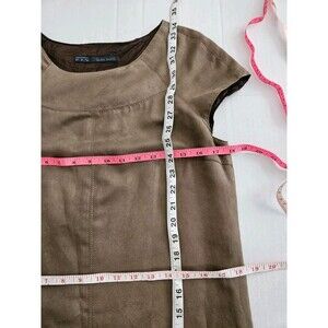 Zara Basic Faux Suede Brown Shift Dress Size M Lined Cap Sleeve Babydoll