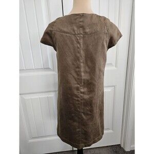 Elevate your wardrobe with this Zara Basic Faux Suede Brown Shift Dress, perfect for any casual occasion. The dress features a boat neckline and cap sleeves, with a pullover closure for easy wear. The solid pattern and vegan suede fabric type give it a stylish edge, while the lined feature ensures comfort.