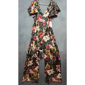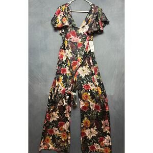 Zara Basic Floral Jumpsuit Boho Cottage New Ruffle Sleeve Wide Leg Hippy Artsy