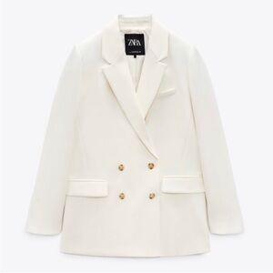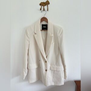 Zara Basic Flowy Blazer in White Double Breasted Ecru Size Large