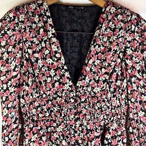 Zara Basic Fully Lined All Over Floral Shirred A-Line Dress Size Medium