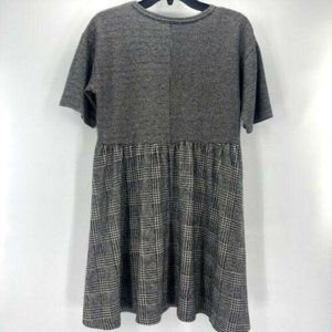 Zara Basic Gray White Wool Knit Checked Shift Dress - Size Small