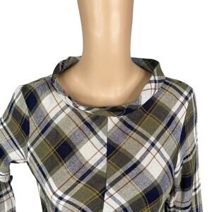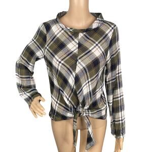 Zara Basic Green Plaid Mock Neck Tie Front Blouse Top SZ S