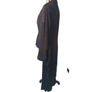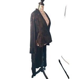 This Zara Basic Jacket in size small features a dark and edgy black on black floral print, croped in the front and long in the back perfect for those who love a gothic vibe. Made with viscose material and long sleeves, it makes for a comfortable yet stylish addition to any wardrobe.