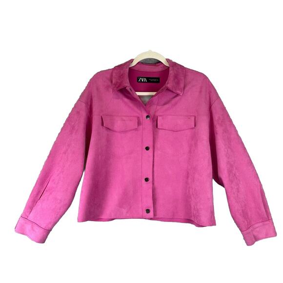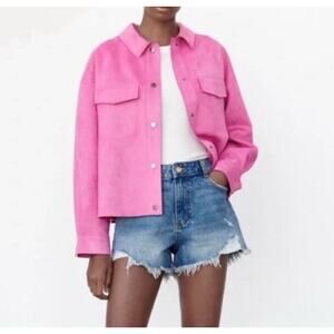 Zara Basic Jacket Women's XS Pink Faux Suede Long Sleeve Snap Front Barbie Biker