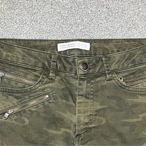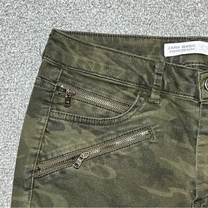 Zara Basic Jeans Camo Z1975 Women's Size 6 Green Skinny Low Rise Stretch Denim