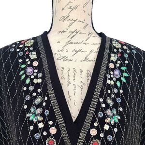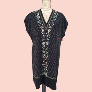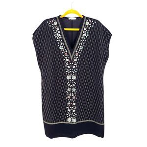 Zara Basic Jewel Print V Neck Shift Dress Black XL