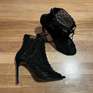 Zara Basic Laser Cut Peep-Toe Lace-Up Heels - Size 40