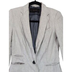 Zara Basic Linen Blazer Womens XS Gray Career Casual Single Button Vented Lined