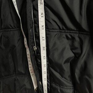 sleek + cozy black quilted coat w/ warm knit collar + longline fit ✨ size m — soft + comfy, perfect for layering this winter.