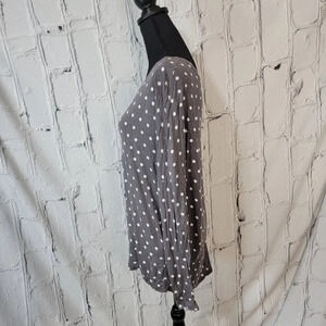 Zara Basic Long Sleeve T-Shirt Gray White Polka Dot Zipper Back Pullover Tee M