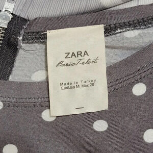 Zara Basic Long Sleeve T-Shirt Gray White Polka Dot Zipper Back Pullover Tee :